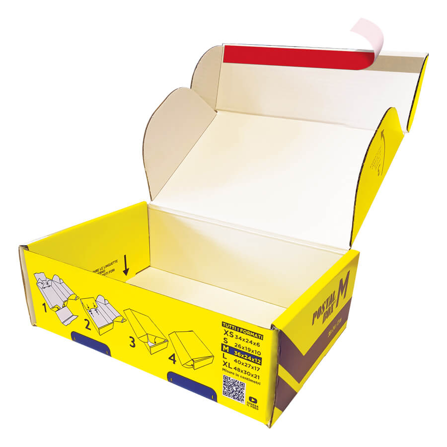 Le POSTALBOX sono pratiche scatole automontanti per spedizioni postali che offrono una soluzione efficiente e conveniente per l’imballaggio. Con un rivestimento patinato lucido, escludendo il formato XS, queste scatole non solo presentano un aspetto estetico di alta qualità ma sono anche pronte all’uso con accessori inclusi.